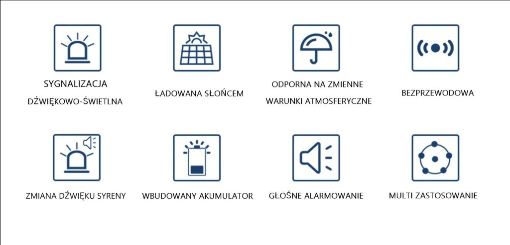 Bezprzewodowa syrena zewnętrzna dźwiękowo-świetlna z wbudowanym akumulatorem – działa z naszymi zestawami alarmowymi 433 MHz – AZ10WG, AZ11WG , P70-4G/LTE, TUGARD G20 oraz wybranymi czujnikami i pilotami 433MHz.