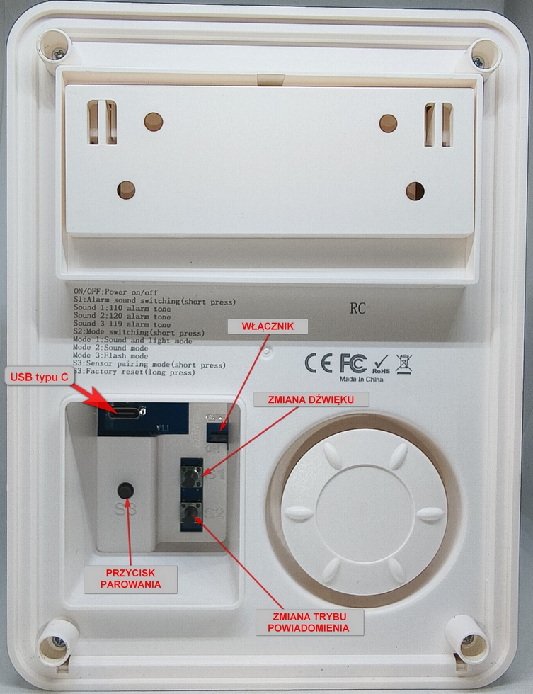 - Kodowanie i częstotliwość: EV1527/2262, 433mHZ,